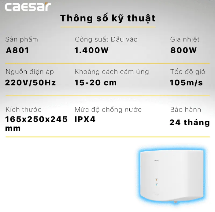 Hình ảnh Máy Sấy Tay Caesar A801