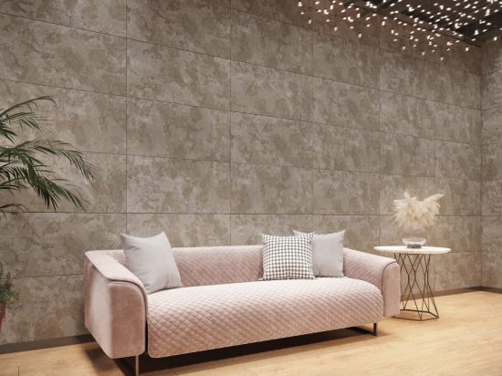 Phòng Khách: Tạo điểm nhấn sang trọng, hiện đại cho không gian trung tâm của ngôi nhà. Màu Xám của gạch mang lại cảm giác bề thế, đẳng cấp và dễ dàng kết hợp với các món đồ nội thất khác.